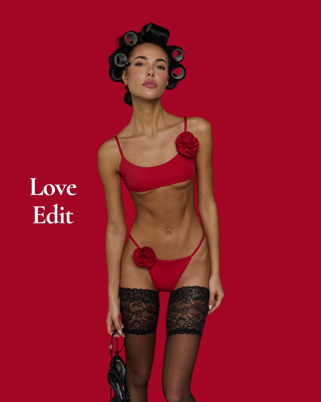 Bas de bikini froncé corsage. Couleur sporting Red. Tissus en lycra recyclé italien. Rose rouge en relief, symbole de la marque depuis 2020. Collection limitée pour la St Valentin - stock limité.
